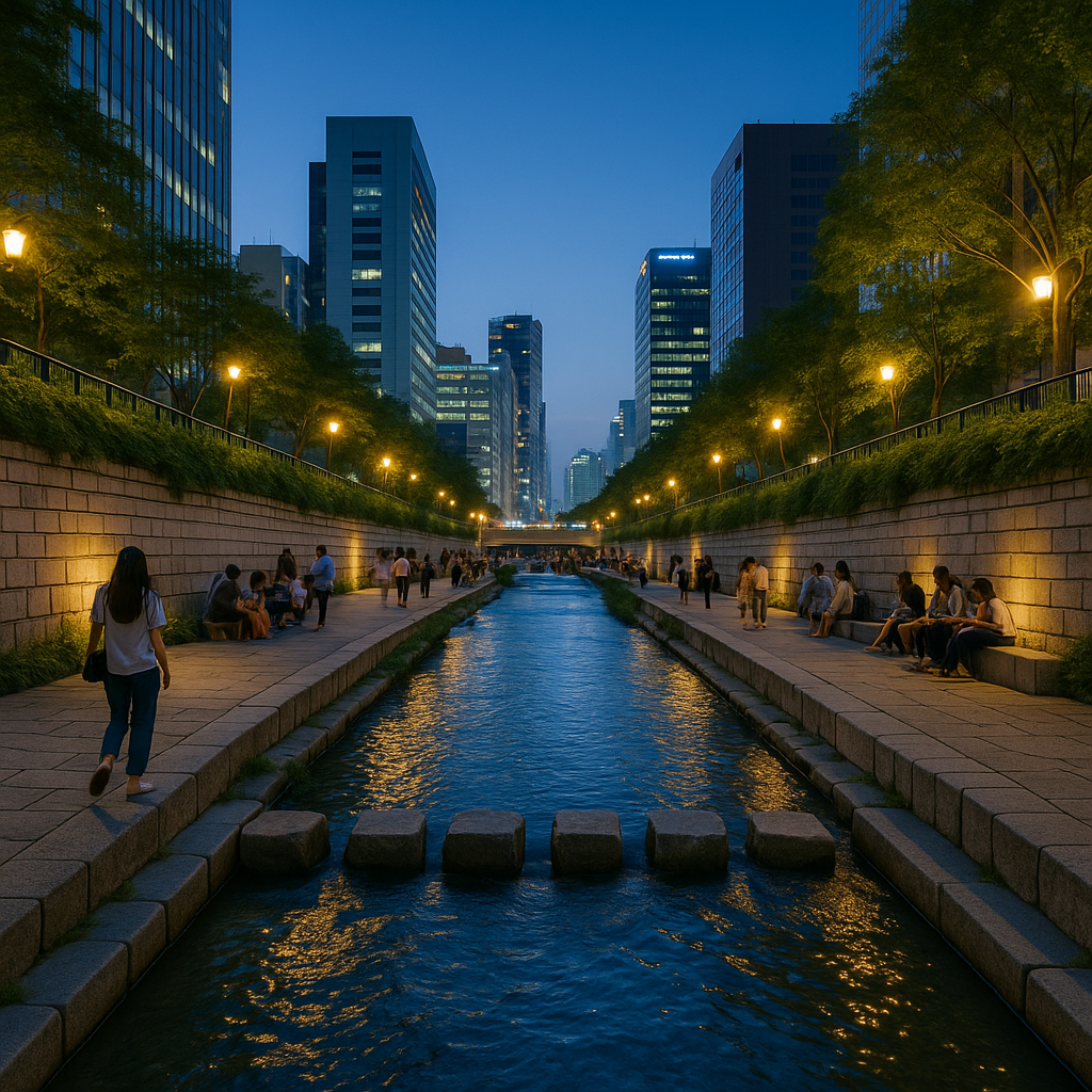 청계천 복원은 전 세계 도시 재생 및 도심 생태 복원의 대표 성공 사례로 꼽히며, 차량 중심에서 보행자 중심으로 도시구조를 전환한 상징적인 프로젝트. - 문화와 축제의 무대
